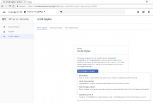 Tıkladıktan sonra bize bir API Key verilecektir. Bunu birazdan göreceğiniz konsola ve Android studio projesine eklememiz gerekecek.